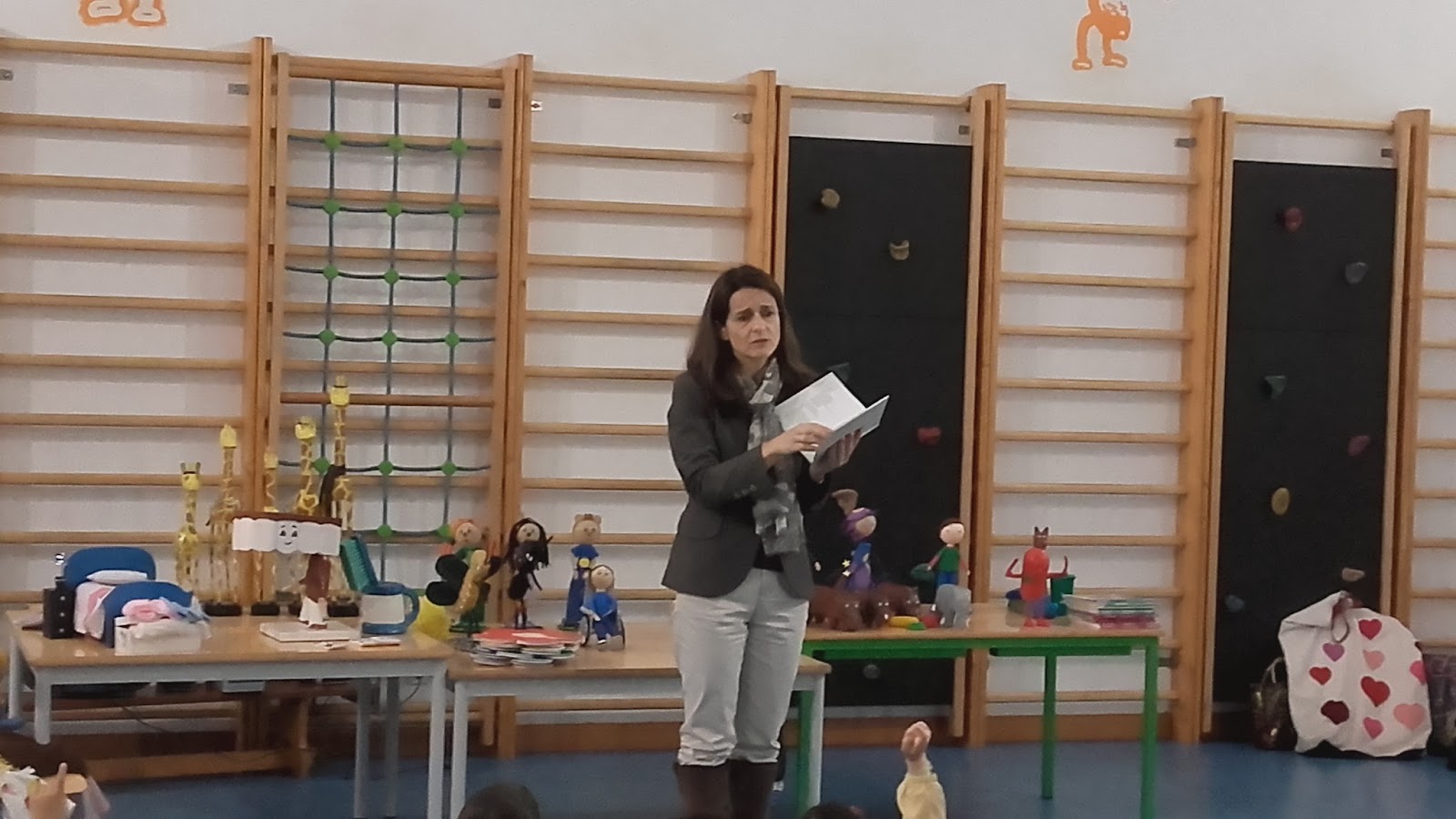 Manuela Mota Ribeiro, a autora de vários livros para crianças, foi nossa convidada dia 24 de fevereiro. Houve três sessões no ginásio da escola. A autora resumiu um pouco as suas várias obras e fez corresponder os bonecos aos livros. Abordaram-se vários assuntos muito importantes relacionados com a saúde, a segurança,viver em conjunto, o respeito por nós próprios e pelo outro.