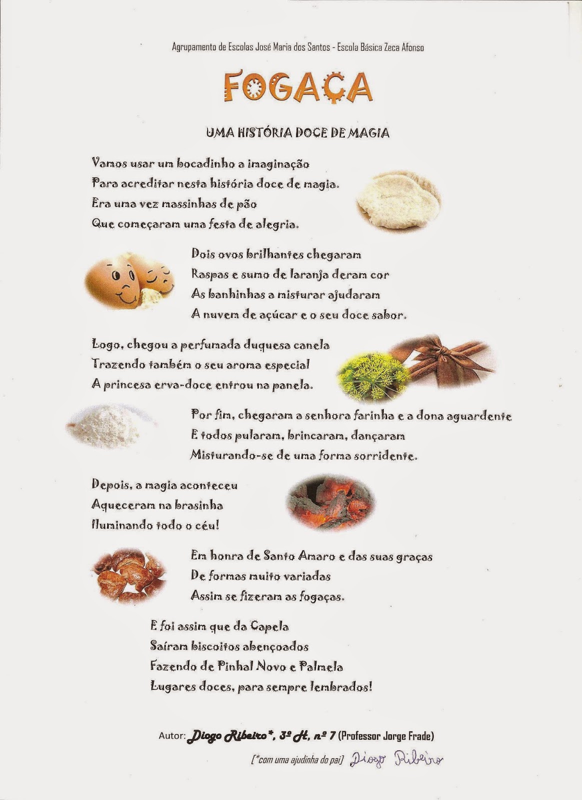 Esta simpática senhora contou-nos a lenda das fogaças, que o seu santo padroeiro é Santo Amaro, que a forma dos bolos tinha como finalidade pedir proteção para as colheitas, gado ou a cura de alguma doença.